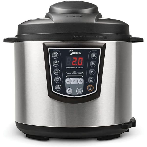 Midea Elétrica Digital 6L é uma panela de pressão elétrica que combina capacidade de 6 litros e potência de 1000W. Essa combinação a torna ideal para preparar refeições grandes rapidamente, sem precisar vigiar o fogão.